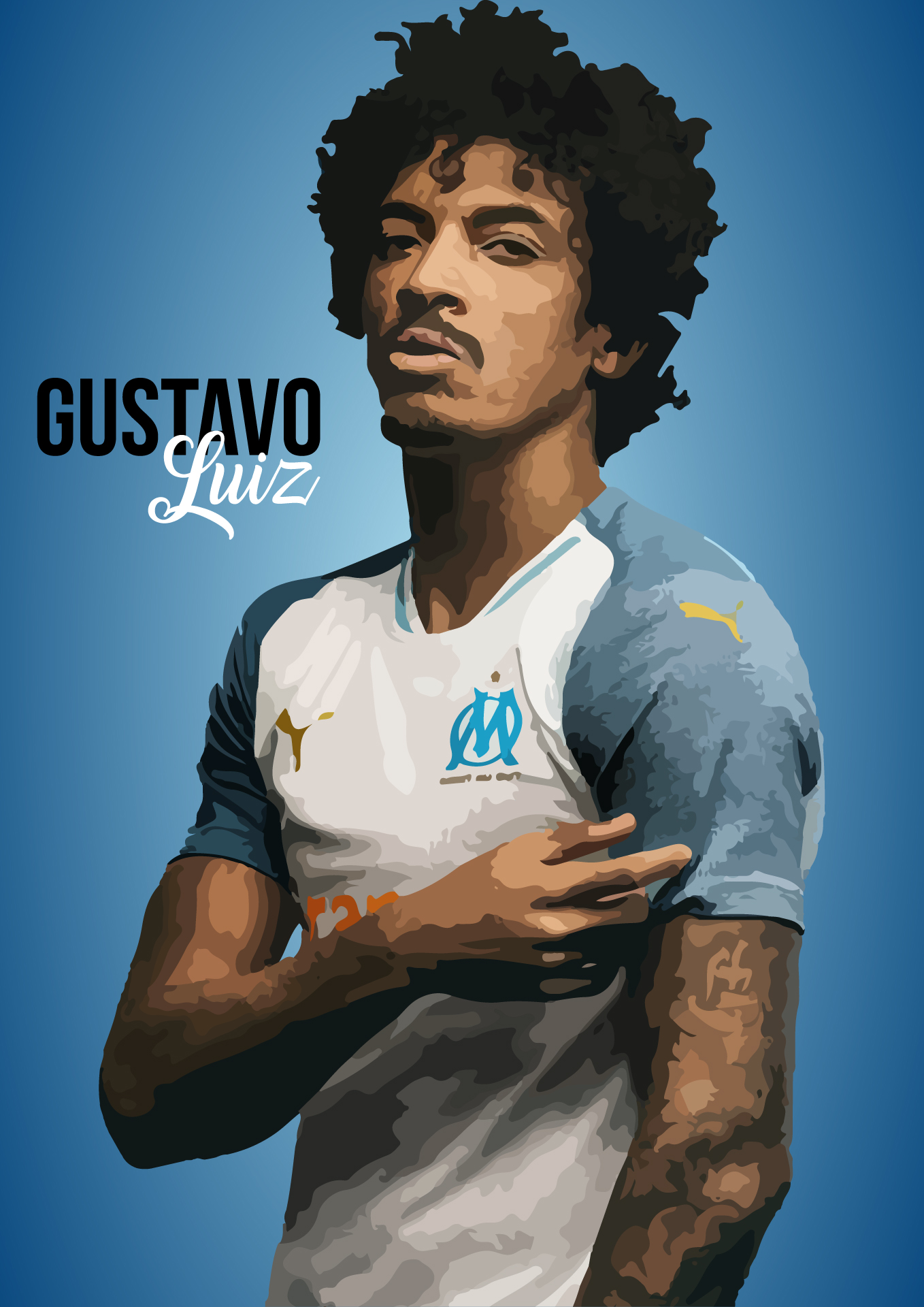 Ces portraits font partie d'une série que j'ai réalisée en adoptant un style graphique vectoriel, marqué par des lignes épurées et des aplats de couleurs contrastées. Le style se caractérise par une simplification des traits et des ombres, tout en conservant des détails essentiels pour capturer l'expression et la personnalité des sujets. Ce traitement visuel met en avant les joueurs de football avec une esthétique à la fois moderne et stylisée, évitant les textures complexes pour se concentrer sur l'impact visuel et les couleurs vives, tout en conservant l'essence de chaque joueur.